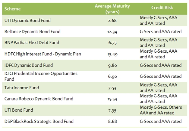 Credit risk: Credit risk relates to the risk of default. If the credit rating of the bond worsens the bond price will decline and the returns will be lower. As far as credit risk is concerned, the top long term income funds have high quality bonds in their portfolio, as we will see in the table below.