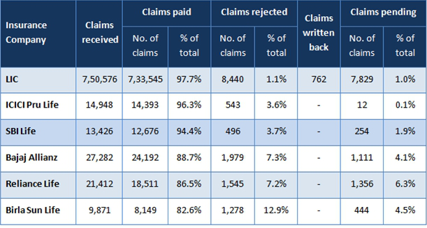 While a majority of the death claims do get paid, it is also true that some death claims get rejected. Some insurers have a better claims settlement track record than others. The table below shows the claims settlement ratios for the some of the biggest life insurers in FY 2012 - 2013 (you can find the same information for all insurers in the death claims table in the IRDA annual report, available for download on the IRDA website)